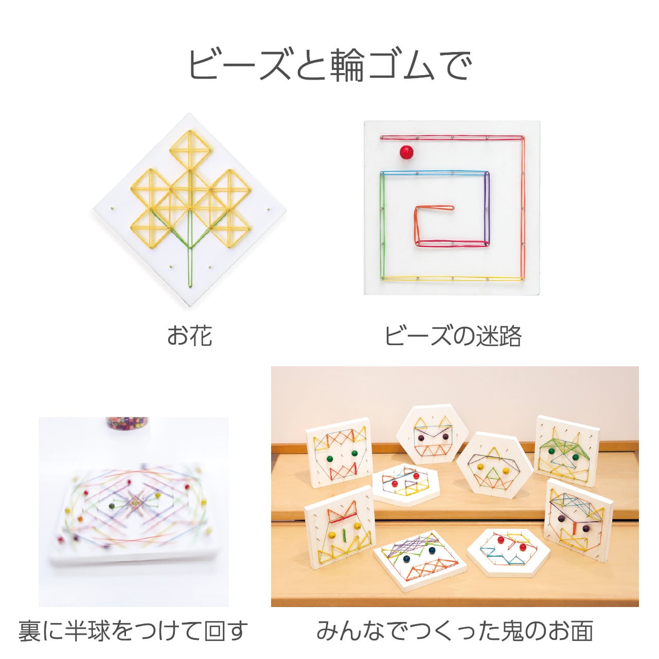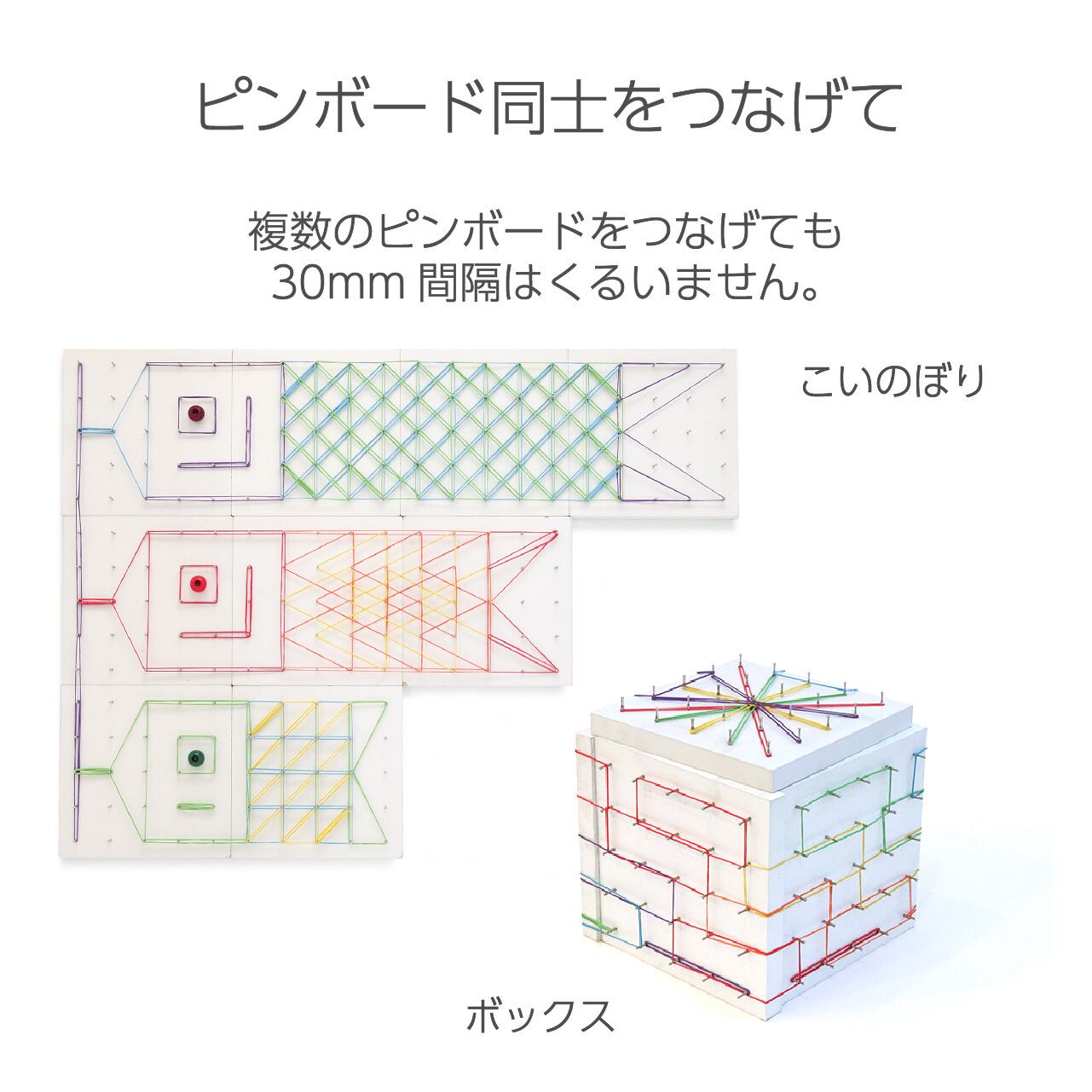 点と点がつながって線になり、線と線から面が生まれるという関係性を、あそびながら体感することができます。